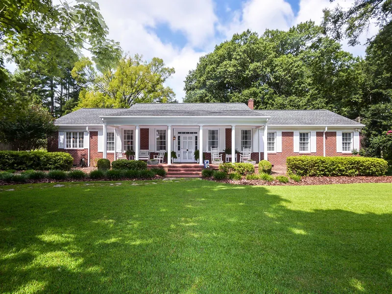 One of Downtown Clover's most cherished landmarks. Perched in the shade of the historic hardwood trees on 6.6 meticulously manicured acres. This brick ranch exudes southern charm from the rocking chair front porch for sipping mint julips on a warm summer night to the back porch and grilling patio overlooking your private pond. In between, hardwood floors lead you through tastefully decorated and elegantly updated living areas including a stunning new kitchen.