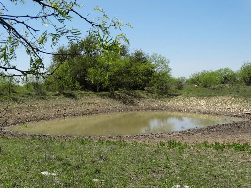 This 48 acres is located among larger ranches across from the Silverbrook Ranch and Bonner/McWilliams Ranch. A few locations to build a new home with beautiful views, or just own your own small recreational place to hunt. County water meter installed, and Coleman County electric on the property just to the north. A small hunting cabin with a generator, carport and storage building sits among the trees. Great place for a second pond on the SE corner. Fences on north and west boundaries are good, east & south boundary fences are fair. Has a 3-4 are food plot on the north end. Terrain varies from flat on north side to sloped and a small ridge through the middle and south side.