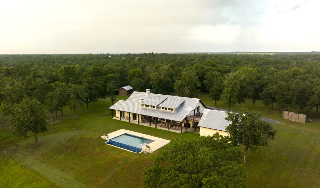 The Home — Designed with intention and built for hosting, the main residence sits at the highest point on the ranch, offering unmatched panoramic views of the surrounding land. Every detail—from reclaimed beams and stone finishes to expansive living areas and a custom game room—was created to welcome guests and create unforgettable moments. This 3,125 SF custom home features vaulted ceilings, exposed beams, and luxury finishes throughout; an expansive game room and open-concept great room; a chef’s kitchen with large island and premium appliances; multiple bedrooms plus bunk rooms; and a large covered back porch with fireplace and lounge areas. An infinity-edge pool overlooks Robertson County, making this the ultimate setting for families, friends, hosting, and holidays.