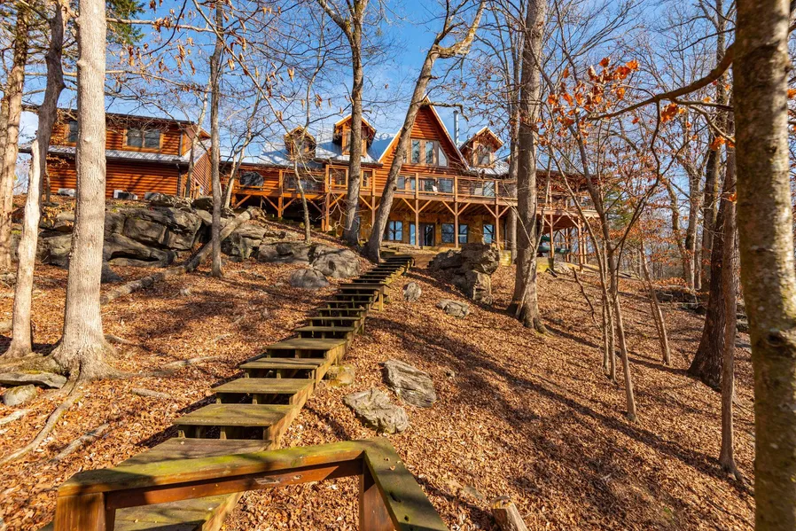 Welcome to this private gated 41 acres in N Georgia with magnificent log home, barns, arena, fenced & cross-fenced pasture, pond & river frontage. This craftsman treasure sits 1800 feet off the road with views from wrap-around porches, 2 & 3 car garages, 11 stall barn, & private boat ramp for fishing/kayaking down Coosawattee River. Windows, wood accent...