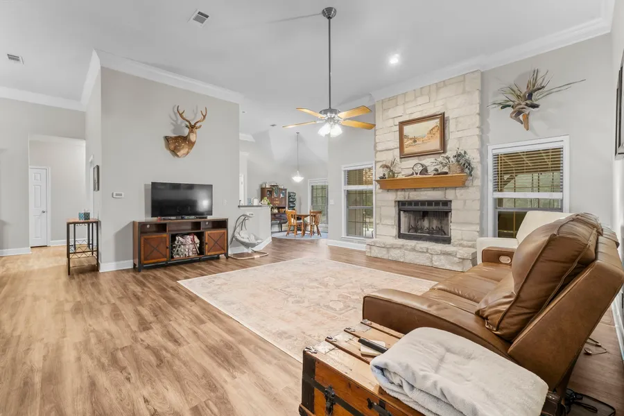 Single story brick home situated on 2 cleared acres just minutes from Lake Livingston. This beautiful home offers ample space for entertaining as the main living space is an open concept feel and steps away from a large covered back patio with a fenced back yard. The 2 car gauge provides space to park your ATV or Watercraft while leaving plenty of space for vehicles and guest in the extra long driveway. You will not want to miss a chance to view this home that offers so much just minutes from downtown shopping or boating on Lake Livingston.