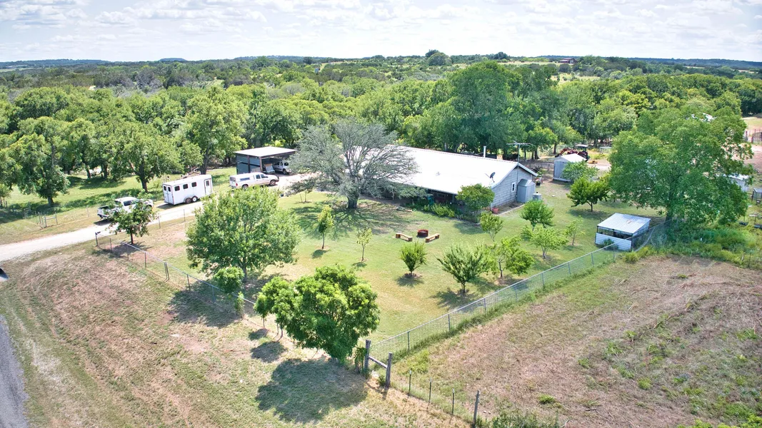 The quaint country home is approx. 1600 sq.ft. with a 500 sq.ft. covered porch and fenced yard and sits in the SE corner just off FM 2942. The home has 4 bedrooms and 2 bathrooms which are offset with master suite on one end and the other 3 beds and bath on the other end.