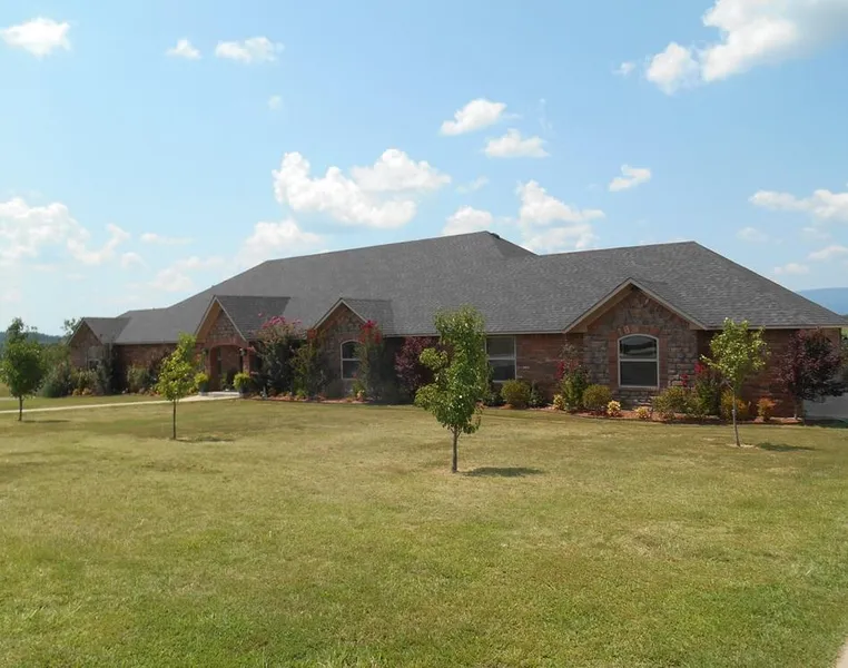 MOUNTAIN VIEW....Enjoy the panoramic view of the surrounding mountains from this spectacular home on 2.95 acres. This home features 3-bedroom, 3.5-bath, theater room, an office, a large laundry room, and a safe room. Each bedroom in this home has its own private bathroom. Additional interior features include custom smooth alder wood cabinets, granite countertops, and laminate flooring. Accented with rock - the fireplace, columns, and the kitchen bar draw attention to this rustic custom built home. Enjoy your morning coffee from the beautiful covered back patio with amazing views of the mountains, along with your professional landscaped yard. This home has so much to offer and is truly unique. "MUST SEE"