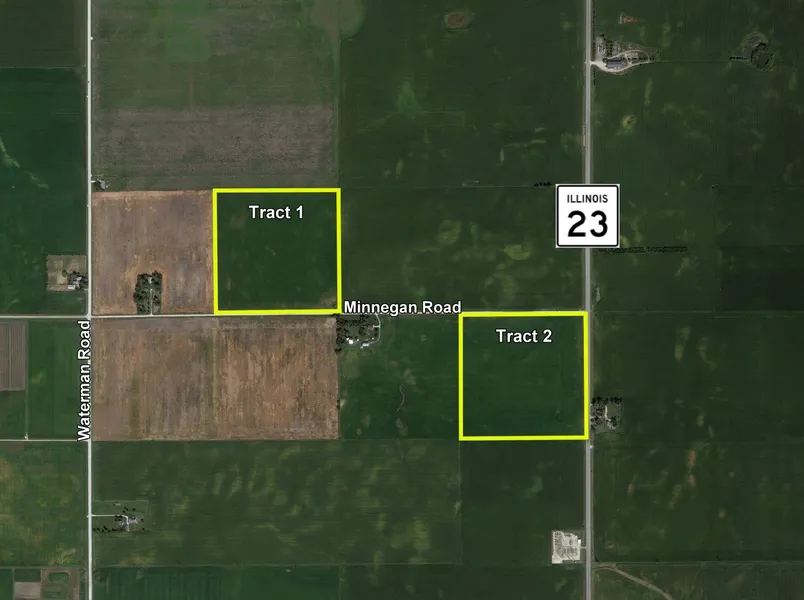 Frontage: Tract 1 has approximately 1/4 mile of road frontage on Minnegan Road and Tract 2 has 1/4 mile on Minnegan Road and 1/4 mile on Illinois Route 23.