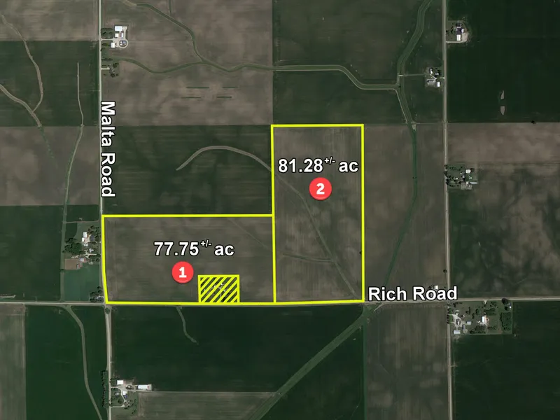 Frontage: There is approximately 1/4 mile of road frontage on Malta Road and approximately 5/8 mile on Rich Road.