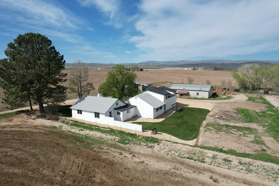 This serene property features a beautifully remodeled two-story home offering breathtaking views of the Owyhee Mountains. Close to recreation opportunities in the Owyhees and along the Snake River. The spacious layout includes a large living room with high ceilings and a cozy propane fireplace, an office, and a sizable recreation room. An extra deep three-bay garage with dedicated workshop space, storage, and a 1/2 bath. Above the garage are two of the bedrooms, a bathroom, and the recreation room, which could easily be converted into a separate living area. Also includes a shop w/ large sliding doors, power supply, a wood stove, and a partial concrete floor, ideal for equipment storage or potential conversion into a horse barn. Perimeter wire fenced. Ample space for recreational vehicles and various hobbies. The natural shade trees and large open area make it ideal for creating a horse setup, potential adding an arena. Owner carry terms available.