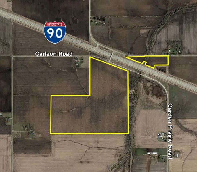Frontage: There is approximately 1/8 mile of road frontage on Garden Prairie Road, 3/8 mile on Carlson Road, and 3/16 mile on Interstate 90.