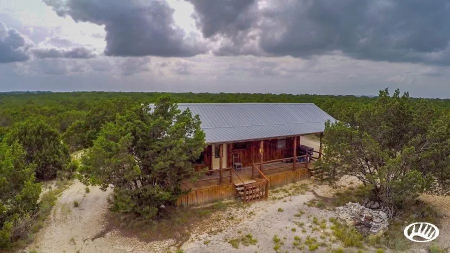 - Improvements: There is a very nicely appointed 1 bedroom, 1 bathroom cabin built in 2005 with great open living space, covered front porch for enjoying beautiful sunsets, and the interior is finished out with pine wood floors and cedar walls. The cabin utilizes a metal roof with rainwater collection system for its water, has a septic system installed, and has a central A/C and heat unit installed that is powered by portable generator. The cabin is situated on a rise on the property and the long range views from the porch are fantastic.