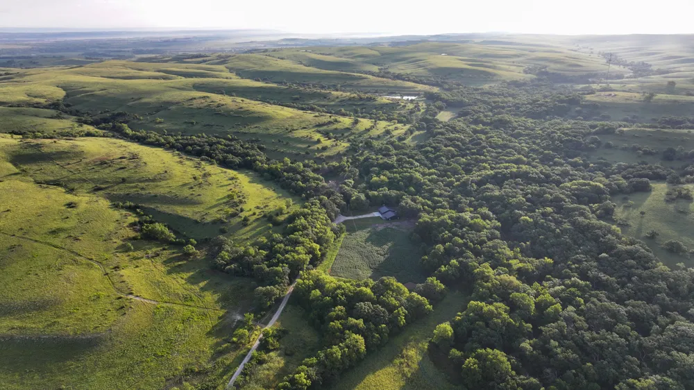 This 260 +/- acre property is located in southeast Riley County just outside of Manhattan, Kansas. It is truly the ultimate Kansas dream farm and then some! It is located in the northern heart of the Flint Hills. The property is full of diversity with hardwood timbered draws, dogwood and cedar thickets, and rolling Flint Hills native warm-season grasses. The hardwood timber on the property is incredible and mainly mixed with giant burr oak, chinquapin oak, and sycamore trees. There are 7 +/- acres of established alfalfa, clover, and soybean food plots. The food plots also have Big Rock switchgrass planted on the edges and in front of all the box blinds for concealed entry and exiting access. There are multiple wet-weather creeks, a spring-fed watering tank, and a 1.5 +/- acre spring-fed pond. The pond is stocked with huge largemouth bass and bluegill. The property has 186 +/- feet of elevation change, creating some of the best sunrise and sunset views in Kansas!