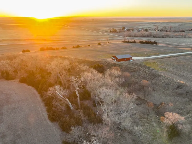 Located just 8 miles south of Ellis, KS, on Ellis Avenue is this rare real estate offering, presenting the perfect blend of trophy hunting opportunities, peacefulness, and a convenient location. Situated a mere 25 miles southwest of Hays, KS, and a short 10-mile drive from Cedar Bluff Reservoir, this 80-acre property boasts a brand new 4-bedroom, 2 bath barndominium, completed in 2024, overlooking a mile of heavily wooded creek bottom running through the center of the farm. Whitetail deer and Rio Grande turkeys frequent the crop fields on the property during the early morning and evening hours, feeding throughout the 55+ acres of cropland. This farm is completely setup for convenient and successful hunting opportunities with multiple tower blinds and wildlife feeders already in place. Water within the creek bottom, as well as rural water hydrants on the farm, provide a consistent water source for wildlife year-round. With ample tree cover in the creek bottom and plenty of cropland acres, this farm checks all the boxes for holding and attracting trophy deer, turkeys, and upland game.The cabin is situated on the southern bluff overlooking the creek bottom and provides over 1,940 square feet of living space. It is fully furnished with modern rustic furnishings, appliances, and a cozy ambiance throughout. You'll enjoy incredible views of the creek bottom and surrounding crop fields from the spacious 20' x 9' back porch, perfect for unwinding and soaking in the serene landscape surrounding the cabin.This property comes fully furnished and is serviced by rural water provided by Trego RWD #2. The entrance to the driveway is just a few hundred feet from the bordering blacktop, Ellis Avenue, and is equipped with a nice iron overhead gated entrance, providing excellent curb appeal and security.Hunting enthusiasts will enjoy the prime creek bottom hunting opportunities this property presents, with 2 Redneck Tower Blinds, 2 Boss Buck Spinner Feeders, and approximately 55 + acres of bottom cropland serving as a large food plot for the local wildlife. The heavily wooded creek bottom is filled with a variety of trees, including mature cottonwoods, attracting an array of wildlife such as whitetail deer, turkeys, and upland game, making it a trophy hunting paradise. One stroll through the creek bottom will show evidence of mature bucks visiting the property this past Fall with dozens of large deer rubs, scrape lines, and well-beaten trails. This area has strong history of trophy whitetail deer and good turkey numbers! Trail cam photos from this past Fall provide additional evidence of the quality hunting experiences you should encounter on this farm.Don't miss your chance to own this exceptional piece of real estate blending comfort, exceptional hunting opportunities, and natural beauty all in one incredible package. Contact the listing agents today to schedule your own personal viewing of this property.