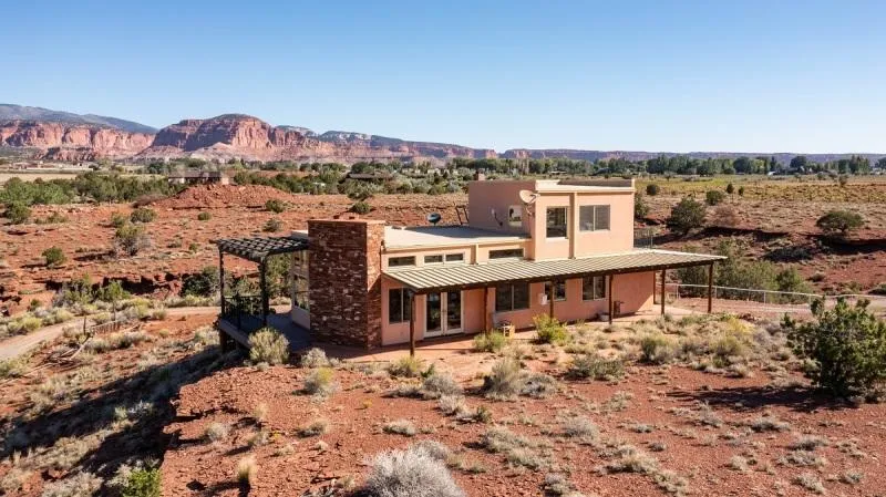 Placed on 7.88 acres for the ultimate in Torrey views, this lovely Southwestern contemporary home is delightfully unique. The absolutely stunning view from huge windows in every room is inspiring as well as relaxing. A great room with fantastic stone work, a long, wide hall, 2 bedrooms and 2 baths add comfort and livability. The home was custom designed and built 20 years ago by a couple from Sausalito, California. They included decks and porches for pleasant, outdoor living spaces. In-floor radiant heat, stained concrete floors and a buried propane tank are some of the home's features. The huge 7.88-acre lot provides distance from other homes, maximum views and enjoyable areas for walking. One car detached garage and storage. Vacation rentals are allowed. Explore Capitol Reef and the neighboring mountains and deserts. TO-392