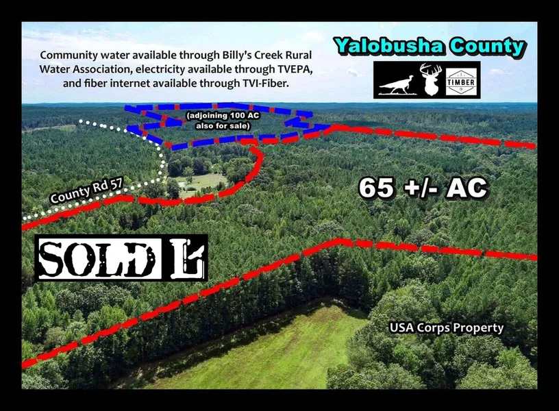This 65 +/- AC tract is being split from a larger 171-AC listing, but the adjoining 100+/- acres is also available combined or separately. There's a new road system all through the property, and a new entrance on County Road 57 (Brooks Road). There's one well-established food plot on the property, and a new plot was made last year tucked in the hardwoods for a perfect little bow spot, too. Two power lines cut through creating additional food plots and great travel lanes for wildlife. A branch of Billy's Creek runs through the property, providing a good water source, too.