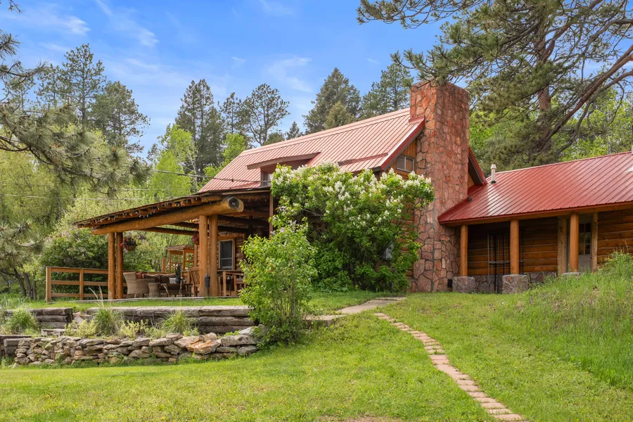 The 1882 Cabinrumored to have hosted Theodore Roosevelthas been thoughtfully restored, blending original hand-hewn logs, artisan touches, and modern upgrades. The kitchen features a handcrafted copper island and bas-relief backsplash by a renowned metalsmith, and a walk-in pantry including a commercial fridge/freezer and quartz coffee bar. The primary suite offers a private patio, fireplace, and ensuite bath. A second bath serves 2 upper bedrooms, plus sleeping space in the loft and den. Enjoy warm east-facing sunrises and all day relaxation from a log-beamed porch.