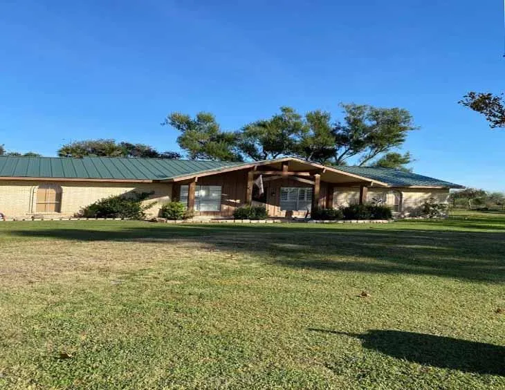 THIS PROPERTY HAS IT ALL - Attractive Brick Home that sits on approx. 5 Acres, with 3 bedrooms, 2 full Bath, and 2 Car Garage. The Kitchen has been updated with granite countertop with a large granite Island in the middle of the kitchen. Stainless steel appliances and lots of cabinets. Good size laundry room with door entrance towards the backyard. Could be used as an office. Beautiful dark wood floors. Split bedrooms. Master bathroom has double sink. Ceiling fans throughout the house. Metal roof. The 5 acres(+/-) has a lot of shaded trees all around and plenty of room to entertain the entire family. Plenty of room to add a garden or even a pool. Storage Room and a Large Water tank in the back yard for horses, cows, or any wildlife. Two Horse Stall with a metal fence all around. Outside Patio with a built-in Fire Pit to relax and enjoy your evenings. Property is all fenced in and it is only 15 minutes from Goliad and Beeville. Plenty of Privacy and is ready to move in. Schedule your showing today. FOR MORE INFORMATION CALL NORMA LUGO 361.443.9873