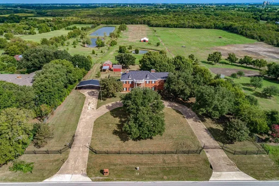 Breathtaking views in one of the most highly sought after and highest ranked school districts in DFW. This Ranchette is the epitome of perfect country living close to the city with a beautiful Colonial Style home situated on 7+- acres. Featuring an inviting grand entryway, 3 living areas, 3 fireplaces, 6 spacious bedrooms, 3.1 bathrooms, large master suite including dual closets & vanities, all with traditional charm. This is the perfect home to be customized to your liking and personal style. Stunning property includes multiple barns, workshop with concrete floor & electricity, and storage shed all complimenting the scattered mature trees & large pond. Bring your animals & enjoy the view of this rare find!