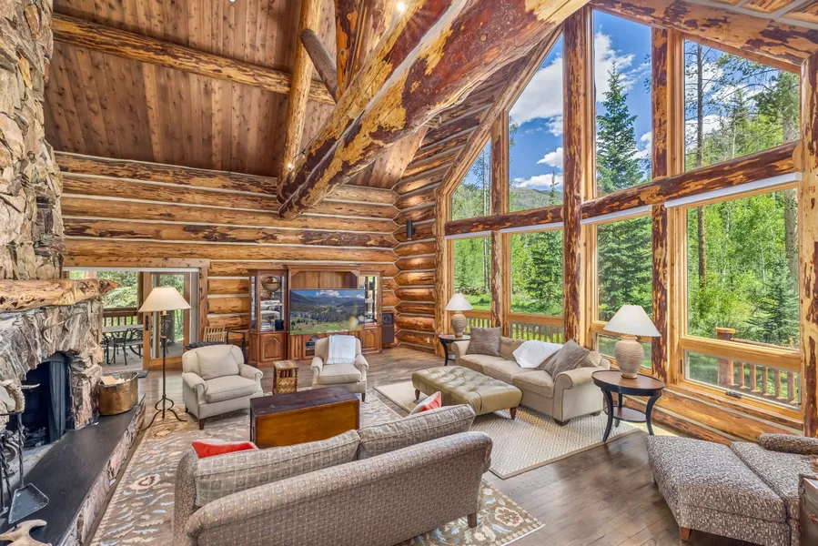 This secluded Log home is a sanctuary from the world with Keystone Gulch Creek running past the covered patio on the East side, National Forest on the South side and a the vacant lot to the West which is included in the sale. The owners of this property enjoy Hiking, Biking or Skiing right from home onto the Keystone Gluch and Aqueduct Trails. This home is located in the Town of Keystone. Turn left out the driveway to horse stables and the ranch golf course or right out the driveway to Keystone's mountain house base area. After a day playing out doors cozy up to the massive double sided stone fireplace in the great room or soak in the creek side hot tub. Kids and adults love the huge firepit in back yard. This home features a chef's kitchen, main floor primary suite and great room with huge wall of south facing glass which captures forest and mountain views. The adjacent vacant lot allo...