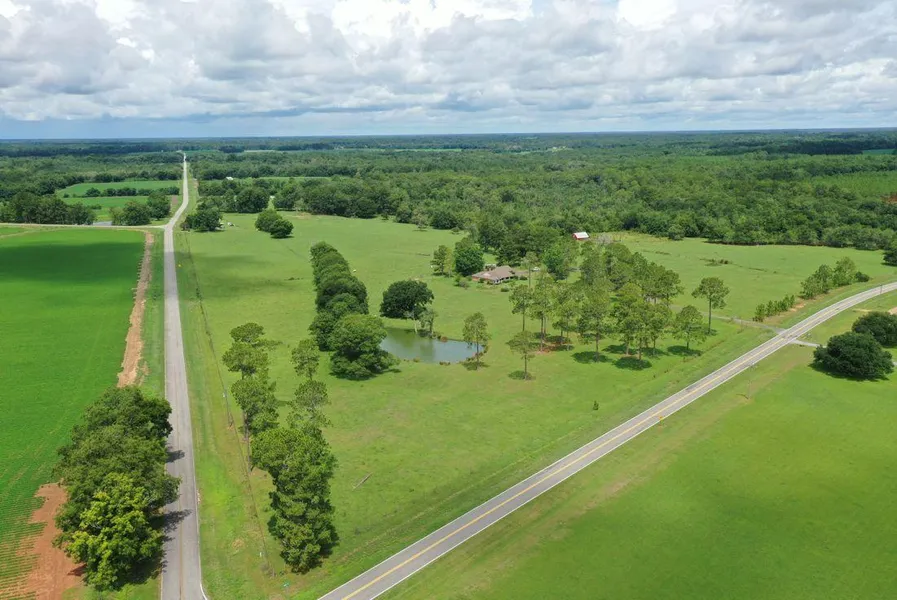 54 Acre Farmstead & 3BR/2Bath Brick Home with Detached /Breezeway, two car garage/carport. Beautiful high ground pasture currently used for cattle. ( make sure you close gates after opening) Open floor plan, tile floors, fireplace. Numerous fruit trees and plantings located around the home. Seven pasture areas are fenced and cross fenced. There is a barn suitable for horses on the property along with a large 3 bay pole barn. Cattle Chute, Pen and Gates remain with property. Several ponds scattered over property. There are two wells on the property that serve the home and the pasture. Good fishing. Amazing black water creek area in back of property with good fishing and amazing duck hunting. There is an RV Shelter with hookup for septic, water, and power. Well over 2,000' frontage on on Pope and Salem Road. Property is not currently enrolled under the AG Covenant so the property could be divided as needed per county regulations. Towering pine trees and Oaks are dotted across the pasture area and around the different ponds. The Creek Bottom is another world. We are still gathering information down there and will be doing some mulching for better access to the water. Great tract to use for Cattle, Horses, Retriever Training or for several families. Hilltop views. Video Available. Property is served by electronic, coded, gate. Call LA for code. Home on lockbox.