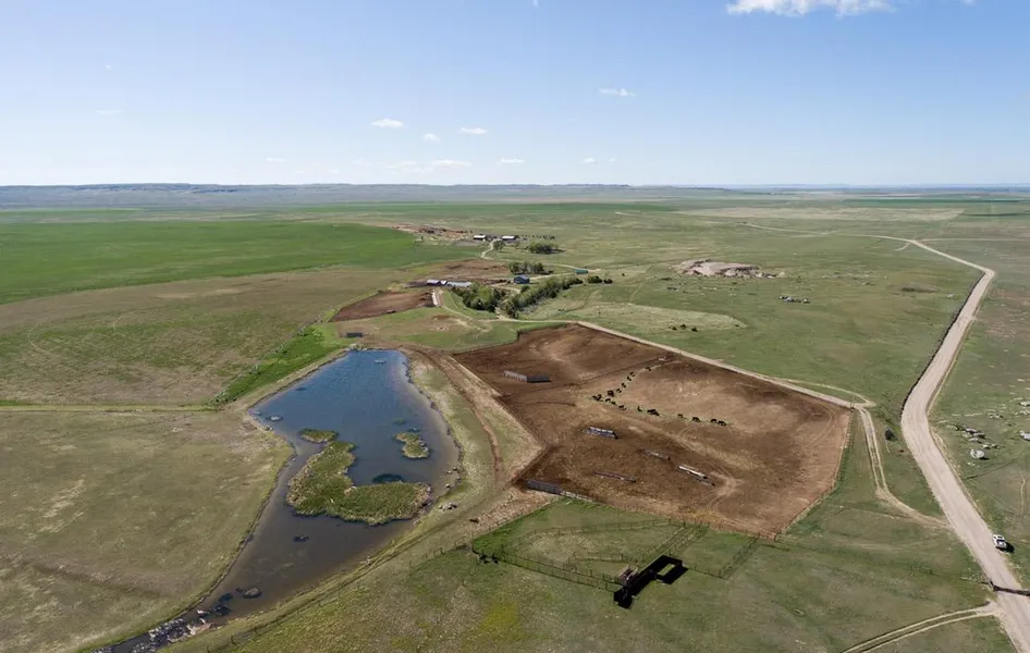 The Tighe Ranch Option 1 is a contiguous 1,785 acre ranch located approximately 12 miles north and eight miles east of Torrington, Wyoming. Of the 1,785 total deeded acres, there are 159 pivot-irrigated acres, 80 deeded acres of CRP, 280 deeded acres of dryland hay, with the balance of the property being 1,266 acres of native grass pasture. Two pivots receive water via an irrigation well and Sheep Creek water right which irrigate the 159 acres that have 65 acres planted to alfalfa, 63 acres planted to oats, 31 acres planted to Triticale. After harvest, the 31 acres currently planted to Triticale will be planted to Sudan grass for winter grazing. The topography of the property features heavily-sodded grass pastures with rolling hills and buttes that provide ample protection for livestock and wildlife. The ranch has excellent habitat for several species of wildlife including deer and antelope and offers a hunting cabin in which the owners currently use to accommodate hunters. There are six wells that provide water throughout the ranch with three of those wells being solar to increase efficiency. The property headquarters includes two modular homes built in 2013, two 48x60 metal shops, one of which features a concrete floor, heat provided by a wood-burning stove, and office/bathroom. The livestock improvements include a feedlot with 900 feet of fence-line bunks, additional pens, load out and more. This outstanding grass ranch with hunting opportunity is just minutes from Torrington with year-round access.