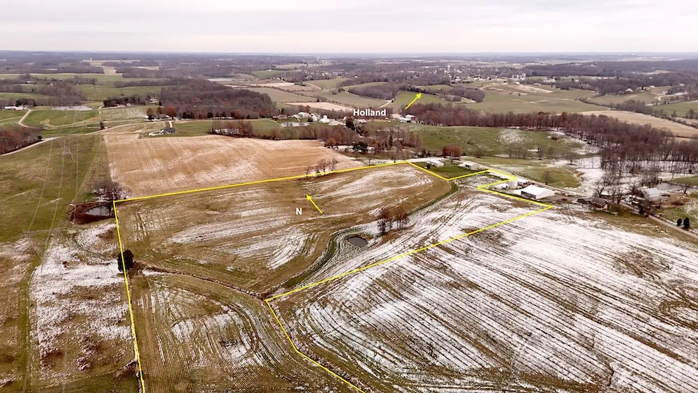 Discover an exceptional opportunity with this ideally located tillable investment farm just east of charming Holland, Indiana. Nestled in the heart of southern Indiana’s picturesque countryside, this property perfectly balances rural tranquility and strategic positioning. Southwest Dubois County is renowned for its quintessential charm and convenient proximity to key regional hubs such as Jasper, Santa Claus, Newburgh, and Evansville’s east side.Accessibility is a standout feature of this farm, located less than 3 miles from I-64 and just 5 miles from Highway 231. This provides a country feel while keeping you within easy driving distance of southern Indiana’s top destinations.Whether you envision this property as a long-term tillable investment or as the site for a future single-family residence, you’ll appreciate the array of utilities available along the road frontage, including power...