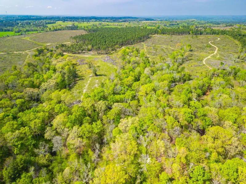 The southeast portion of the ranch displays over 100 of elevation change and is primarily hardwoods. The bulk of the topography is mostly gentle and roughly 130 acres of timber was harvested in 2021. Approximately 38 acres of plantation remains near the FM frontage and extends to the center of the property.