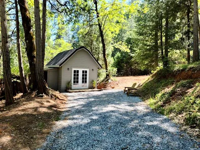 Must see piece of property very close to Georgetown CA. We have been developing this parcel for a few years, we were ready to pull permits for the ADU and start construction when some life changes occurred. Our loss is your gain, a lot of value has been added to this property. Tiny home already on property, all ADU plans ready to submit, and two different main house building sites available. The fifth wheel may be purchased as well, its hooked up to the temp septic and has running water to it. Lots of sun w black oak, cedar, pine and madrone.