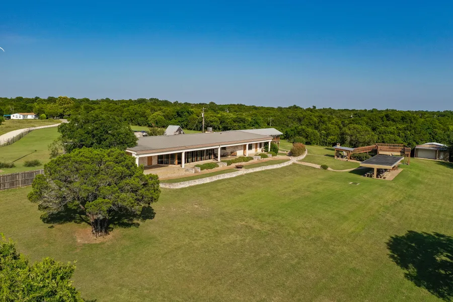 Price Reduced! Lake view income-producing investment property with direct access to Lake Whitney. Special events venue with overnight accommodations for large groups in 2 separate buildings, perfect for family vacations, reunions, weddings or corporate retreats. Sprawling manicured yard area with lake access has great outdoor living spaces including a covered patio, covered outdoor kitchen with bar seating and built-in picnic tables, a shaded outdoor fireplace, and a large observation deck overlooking the water.