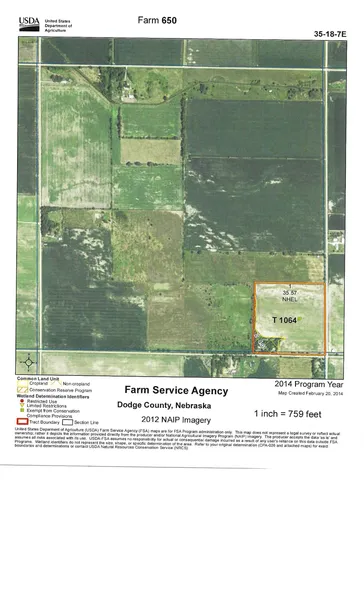 TERMS: The balance of the Southeast Quarter of the Southeast Quarter of Section 35, Township 18 North, Range 7 East of the 6th P.M., Dodge County, Nebraska, containing 34.49 acres, more or less. Kathleen Micek Estate, Marilynn Balter & Matt Micek, Co-Prs Sellers. An Earnest Deposit of $ 25,000.00 will be required on Auction Day. The balance will be due on or before December 23, 2014. Title Insurance & Escrow Closing Costs will be divided equally between Buyer and Seller. Marketable Title will be Provided. 1031 Tax Exchanges Welcome. Agents Represent Sellers. Possession: Full 2015 crop year possession will be given to the new buyers on March 1, 2015.