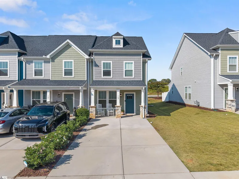 End-unit townhome living at the base of Paris Mountain! Just minutes from Furman University, Travelers Rest, and the Swamp Rabbit Trail, this Craftsman-style 3 bed, 2.5 bath home puts you close to some of Greenville’s best hiking, biking, and outdoor adventures. Step inside to an open floor plan with 9-ft ceilings, granite countertops, and stainless steel appliances — including a gas range. The breakfast nook flows into the great room, making it perfect for entertaining or relaxing after a day on the trail. Upstairs, the primary suite features dual walk-in closets and a private bath with double vanities and a walk-in shower. Two additional bedrooms, a full bath, and upstairs laundry add convenience, plus there’s a dedicated office/flex room for remote work or hobbies. The townhome has a fully fenced-in backyard. The HOA takes care of lawn care and exterior maintenance, so you’ll have...