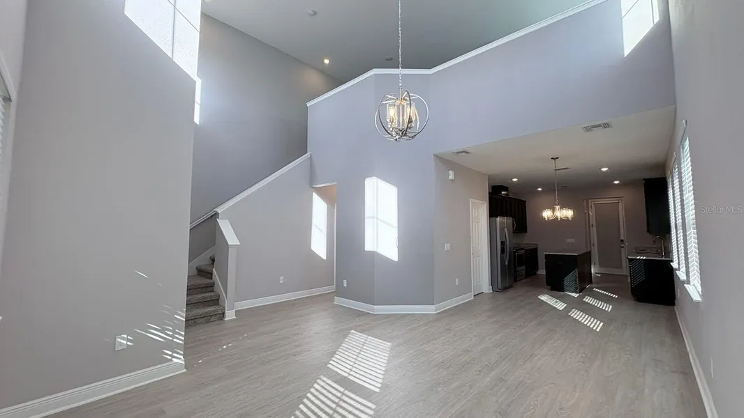 Located in the sought-after Watermark community in Winter Garden, this well-appointed 4-bedroom, 3.5-bathroom townhouse offers a functional floor plan and comfortable living spaces. The main level features an open-concept layout with the family room seamlessly connected to the dining area, creating an efficient and inviting living environment. The kitchen is equipped with stainless steel appliances, a walk-in pantry, and ample cabinetry, providing both practicality and storage. The primary suite is conveniently located on the first floor, offering privacy and featuring an ensuite bathroom with dual sinks and a walk-in shower. Upstairs, a spacious loft serves as a versatile secondary living area and includes a projection screen. Three additional bedrooms are located on this level, with two sharing a Jack-and-Jill bathroom, ensuring a thoughtful, efficient layout. Residents of Watermark enjoy access to community amenities, including a resort-style swimming pool, clubhouse, playground, basketball courts, and walking paths throughout the neighborhood. Ideally situated just minutes from Walt Disney World and major Orlando attractions, with convenient access to shopping, dining, and major highways.