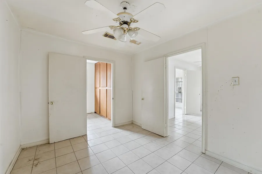 Discover this 1,924 sq ft ranch-style residence in King Estates. The exterior features a traditional brick veneer and a deep attached carport providing shaded access. Inside, the open-concept floor plan is anchored by a large living area with vaulted ceilings and wood-look flooring. The kitchen is equipped with a custom island featuring a built-in cooktop and wine storage, alongside wooden cabinetry and wall ovens. The primary bathroom includes a double vanity with marble-patterned tops and classic tile work. With three bedrooms and two full baths, this 1979-built home offers a generous footprint and functional flow in Southeast Houston. Located near Airport Blvd with straightforward access to I-45.