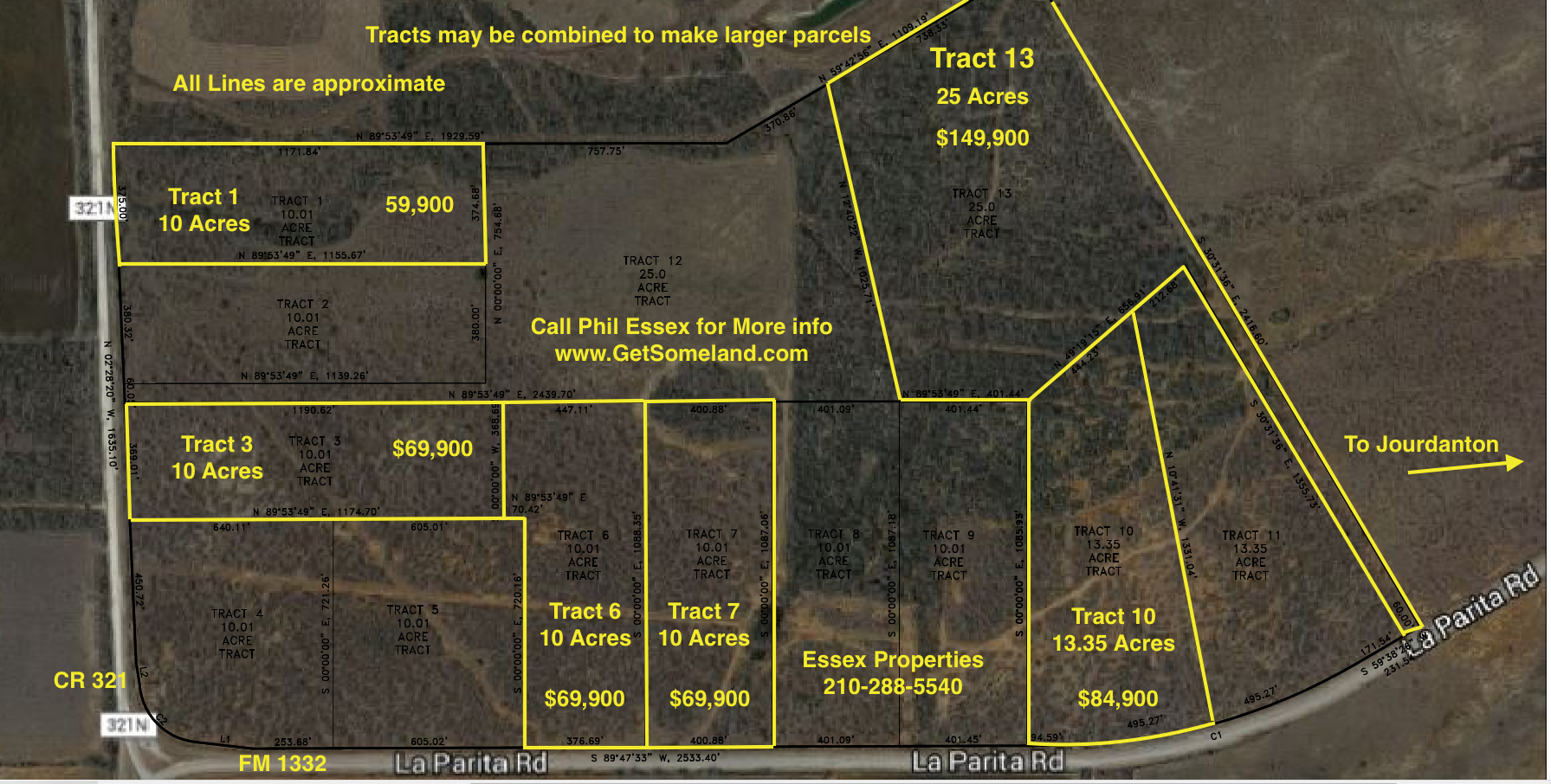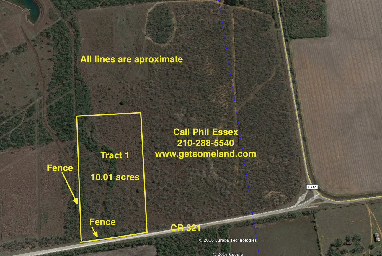 Research Parcel InformationHWY 16 South turn right(west) on FM 1332 / La Parita Rd, go aprx 3 miles and turn right(north) on CR 321. Property on right at fence line.