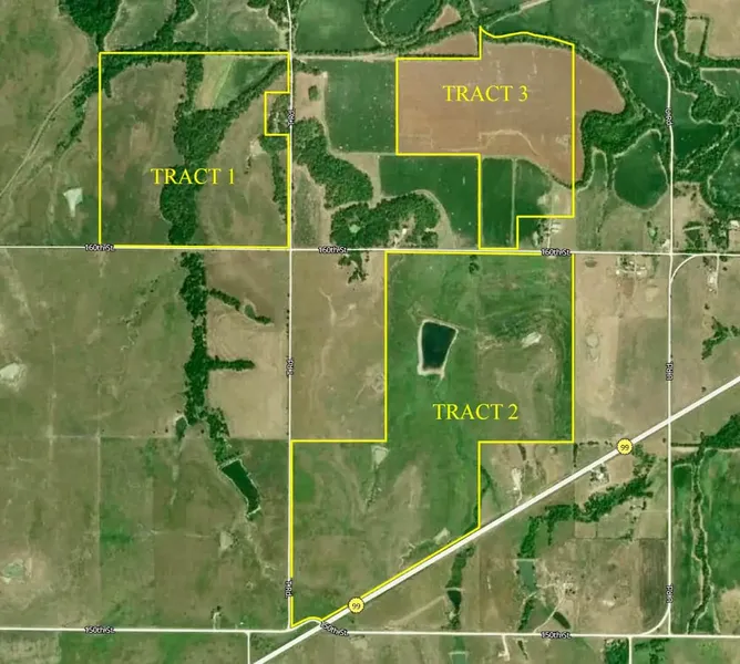 TRACT 1 OF 3: PROPERTY DESCRIPTION: 156+- acres consisting of heavy timber, pasture, 13.5 acres of tillable farm ground, wet weather draw, and a pond. The current landowner has received cattle grazing income from the property, as well as income from the tillable farm ground. Rolling terrain and multiple elevation changes are present, which is a common trait of the region of the Kansas Flint Hills. This diverse property has everything you need to attract and hold wildlife, particularly Kansas whitetail deer, turkeys, and quail. The northwest corner of the property has an abandoned railroad track, which is a popular t...