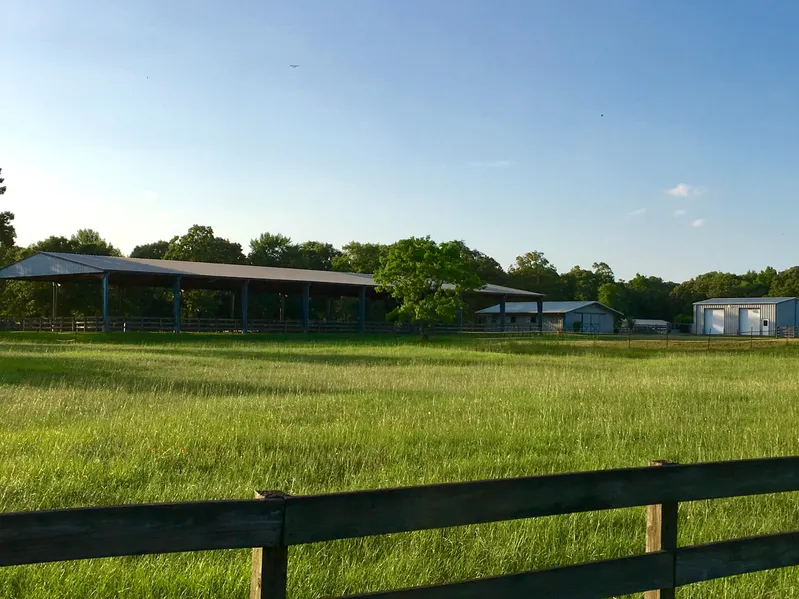 TRACT 2: 10.4+ acres with a small stock pond, 80' x 200' lighted covered arena, 6 stall barn, workshop and fenced paddocks with a nice mix of pasture and mature trees.