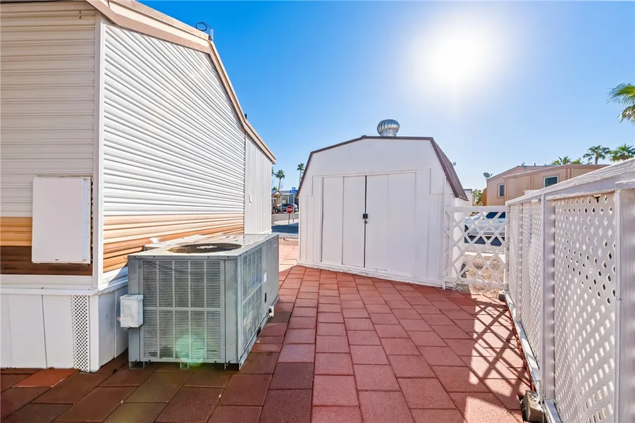Welcome to resort-style living at its best! This charming 2-bedroom, 1-bath home is located on a desirable corner lot in the beautiful Riverview RV Resort, a 55+ gated golf course community in Bullhead City. Featuring new vinyl plank flooring and a bright, inviting layout, this home is truly move-in ready. Enjoy outdoor living with a large covered patio and deck, plus a storage shed and parking for up to three cars. Riverview RV Resort offers exceptional amenities including a golf course, sparkling pool and spa, fitness center, tennis and pickleball courts, craft room, and so much more. All utilities except electricity are included, and the landscaping is maintained for you giving you more time to relax and enjoy the good life. Come see why so many love calling Riverview home!