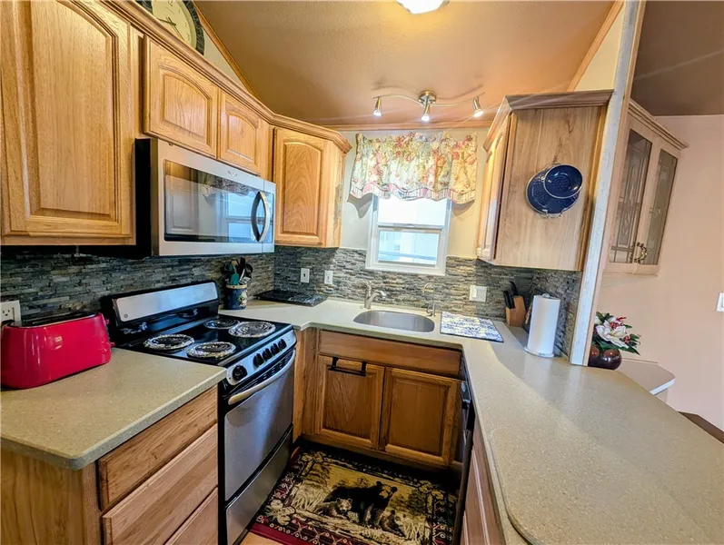 Lovely upgraded 2 bedroom 2 bath on the GOLF COURSE. Gorgeous wrap around deck to enjoy the views of the course and the tranquility of the lush green grass. This home is a must see. Corian countertops, stone backsplash, dishwasher. First bath has a tub/shower combo and the second bath has a shower and laundry. Double paned windows. Home is furnished and turnkey. There is a large shed for all of your extra storage needs. This home is located in the desirable Riverview Resort. It is a 24 hr gated and manned resort. This home sits on an executive par 3, 9 hole top rated golf course. Other amenities include pickleball courts, tennis courts, indoor shuffleboard, billiard room with 6 tables, card room, craft room with pottery kilns and lessons for painting, pottery, woodworking and more, library, fully equipped gym with saunas and showers, 2 pools, 2 hot tubs, a ballroom that hosts dances with live bands, dinners, karaoke and on and on. There are several activities like bowling, Off road riders, golf events and more. This is truly an adult playground. You own the land and HOA dues are only 325.00 per month. That includes sewer, water, trash and cable TV. You are not just buying a home; you are buying a lifestyle. *Animal restrictions apply