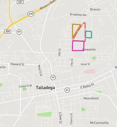 Tract B Talladega 34+/- Acres up to 83.5+/- acres of timberland inside the City Limits of Talladega. This is one of the largest undeveloped tracts inside the City Limits and is just a short distance from the middle of town.