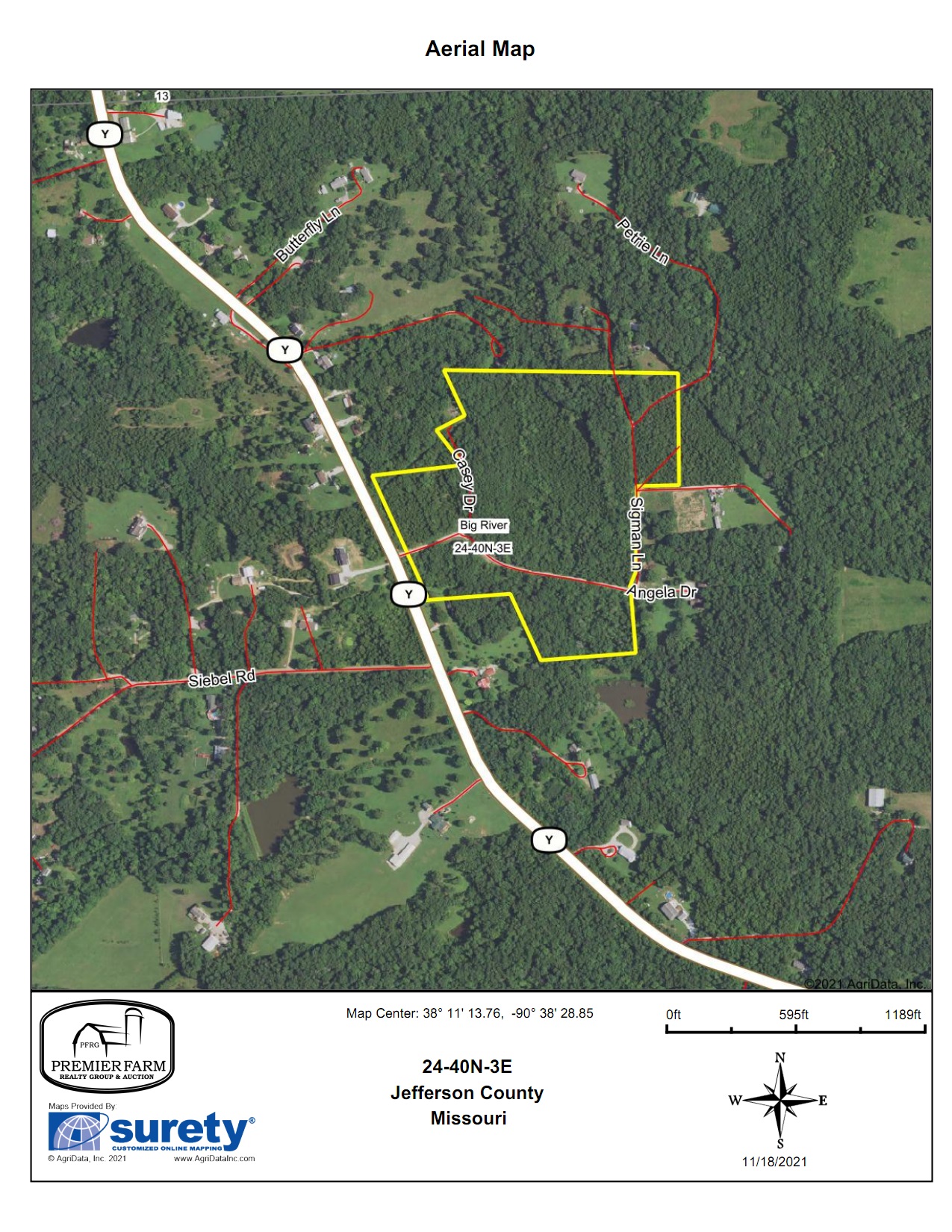 This 30+/- acre tract of land comes right off of State Hwy Y in Hillsboro, MO. The land already has some easement roads throughout which makes accessing all of the property very easy.