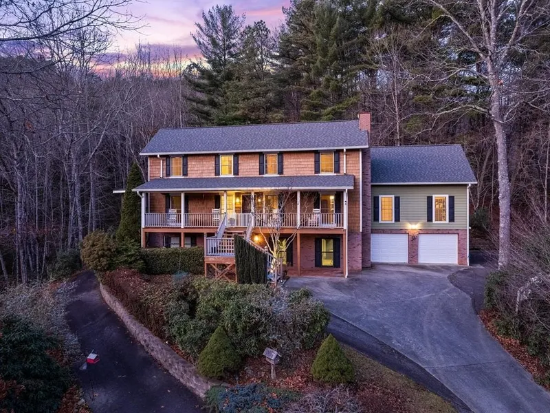 Must See!! Gorgeous 1.5 story Executive home near Franklin NC with full basement built out as workshop and Guest shop. Quite upscale Subdivision with paved roads, Natural gas and High speed Internet. Professionally landscaped yard with Mature trees and annuals. Enjoy the spacious covered porches for Outdoor dining and Entertaining. Interior has beautiful Brazilian Harwood floors in the family room with Fireplace, custom cabinets, granite countertops with Copper backsplash. The Fireplace has a hand carved Mantle. The Primary bedroom has 2 large closets Long range views of Miles of the Appalachian mountains from the screened in other open Porches and the large number of windows. Attached 2 car garage with plenty of storage and a finished Den above that can double as a Guest Suite. This showplace is only minutes from Historic Franklin and the Great Smoky mountain national park. Easy year ro...