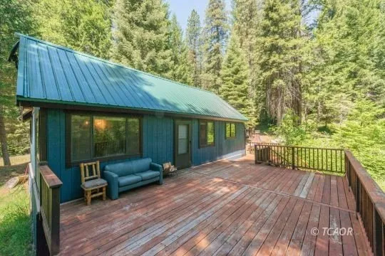 Off grid mountain retreat on Corral Creek- A Natures Lovers Dream. Escape to peace and privacy with this off-grid living cabin, nestled on stunning land surrounded by USFS lands. This rare gem offers true retreat -style living with year round Corral Creek flowing gently besides your expansive Redwood Deck, perfect for morning coffee, evening sunsets or stargazing in total serenity. Home features approx 893 sf of thoughtfully designed cabin space, Oak flooring, T &G Knotty pine walls and ceiling, loft area is your sleeping space, centrally located wood stove, propane wall heater, convenient kitchen in the corner of the home. Large attached utility room and that is where the 8 batteries are housed as well as the Xantrex inverter. There are 6 solar panels that are 175 watts each. A drilled well on the property, 2500 gallon water storage tank on site, property is also serviced by a septic sy...