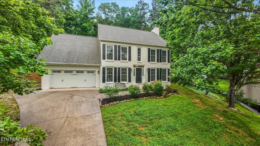 Tucked away at the end of a quiet cul-de-sac in the Karns community, 2819 Dee Peppers Dr. offers comfort, space, and a beautiful wooded setting on over half an acre. This 3-bedroom, 2.5-bath home has nearly 2,600 sq ft of well-designed living space. Step inside to find warm wood floors and tile throughout the main level. The living room features a cozy gas fireplace flanked by built-in bookshelves, while the breakfast nook-set in a sunny bay window-overlooks the peaceful back porch. The kitchen comes equipped with stainless steel appliances and flows easily into a spacious formal dining room. A convenient half bath completes the main floor. Upstairs, the primary suite includes a large walk-in closet and a roomy ensuite bath with dual vanities, a jetted garden tub, and a separate walk-in shower. Two additional bedrooms share a full hall bath, also with double vanities, making morning routines a breeze. A generous bonus room with built-in shelving offers flexible space for a home office, playroom, or media room. Mature trees surround the .6-acre lot, giving the home a private, tucked-away feel just minutes from local schools and shopping.
