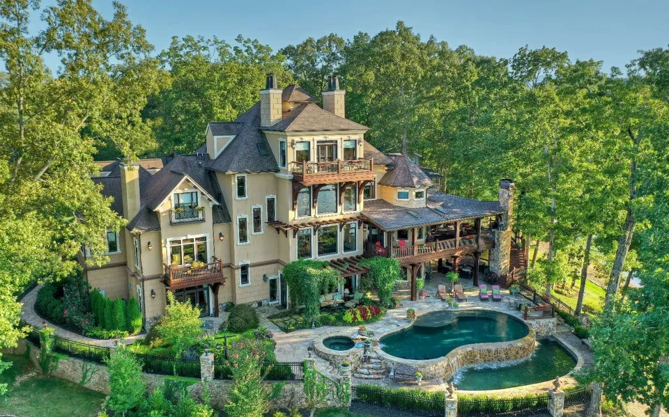 This magnificent property, situated on the shores of Lake Blue Ridge and just a short drive from downtown Blue Ridge, is a paradigm of luxury lakefront living. The home features 5 bedrooms and a bunk room, 5 full bathrooms and 3 half baths, all designed with a focus on sophisticated entertaining. The main floor boasts a formal living room, a dining room, an office space, and a gourmet kitchen complete with a breakfast area and keeping room. The master suite on this level includes a fireplace, a spa-inspired bathroom, custom tiled flooring, and a spacious walk-in closet. The second floor houses guest bedrooms each with its own private bath, a separate office and a library. The third floor is a haven for relaxation & socializing, featuring a custom bar, a comfortable lounge area, and a cozy fireplace. The terrace level is an entertainment paradise offering a billiard room, wine cellar, home theatre, exercise room, and additional sleeping quarters. The outdoor space is equally impressive with an outdoor kitchen & fireplace on the main level w/an additional outdoor fireplace on the terrace level complemented by a pool and hot tub for exceptional lakeside entertaining. Additional luxurious amenities include a custom boathouse, a four-car garage and elevator access to all levels of the home.