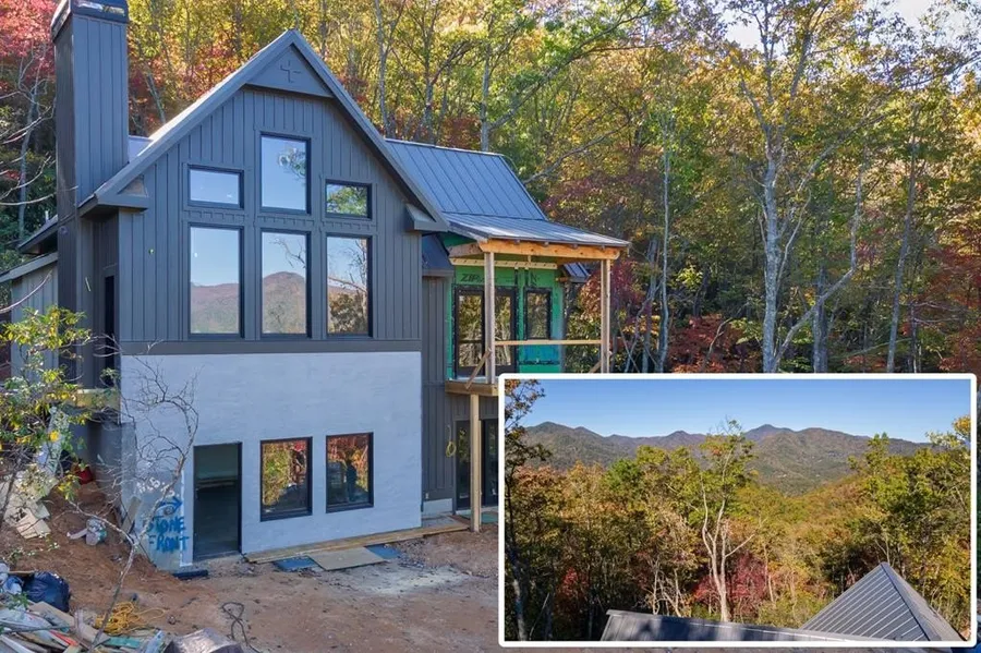 ACTIVE CONSTRUCTION SITE – AGENT MUST BE PRESENT. 2 Bed | 3 Bath Stunning new-construction mountain retreat offering main-level living and total privacy with uninterrupted mountain views from all levels. The home features two large private bedroom suites plus a third-story loft—an ideal children's or guest space with soaring 10' ceilings and red oak floors throughout. All three sleeping areas are connected by a handcrafted spiral staircase with a custom metal railing overlooking the mountain view. The main level showcases an open-concept living area with vaulted ceilings and a beautiful stacked-stone fireplace (gas log or wood-burning option), a spacious primary suite with full bath, and a second bath equipped with a soaking tub. The finished lower level with walk-out includes the second suite with full bath and its own wood-burning stove hookup, and is plumbed for a bar or kitchenette....