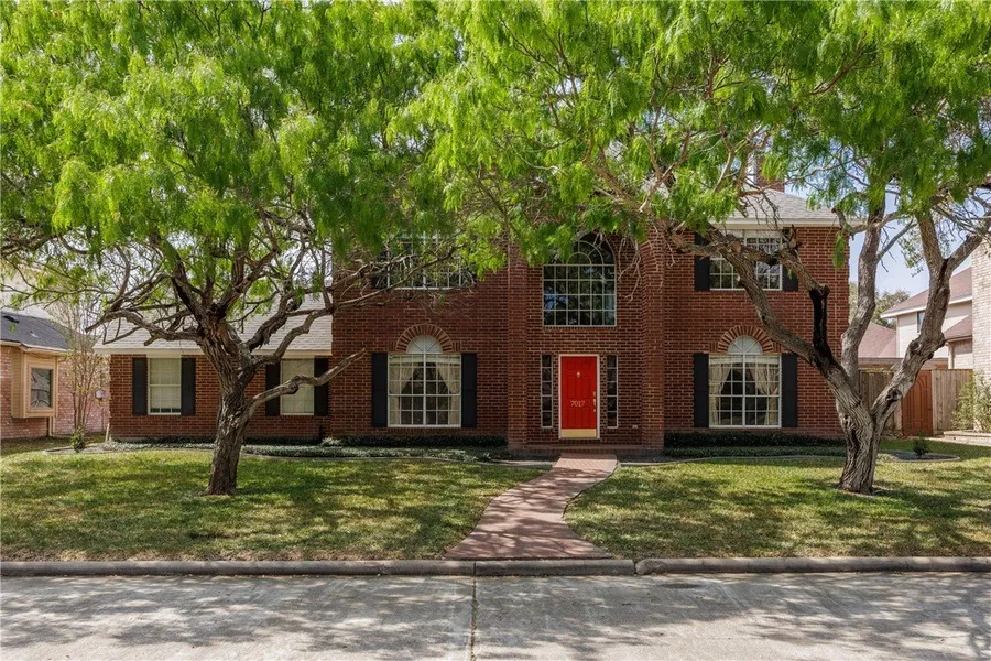 Private backyard features a covered patio, gated access, and a sparkling in-ground pool—perfect for entertaining. Two-car garage with alley entry. Conveniently located near NAS Corpus Christi, shopping, dining, and the bay.