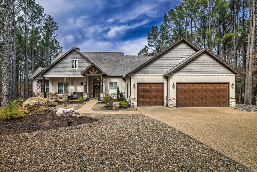 Effortless living at 12 Pizarro Dr. This newly constructed home, thoughtfully designed for comfort, convenience, and style. Ideal for golf-front living, low-maintenance ownership, or easy single-level living, this 3+ bedroom (flex room), 3.5-bath residence is situated on a level lot in Hot Springs Village. The open-concept floor plan is filled with natural light from expansive windows and flows seamlessly into a modern kitchen featuring a high-end gas range, refrigerator, walk-in pantry, ample counter space, and quality finishes. A stunning office suite overlooks manicured fairways and greens and offers direct access to a private back patio—perfect for work or quiet relaxation. The spacious primary suite provides a private retreat with a large walk-in closet and generous living space. Outdoor living continues on the covered patio, ideal for grilling or entertaining, complemented by low-maintenance landscaping. A rare highlight is the heated and cooled oversized 3-car garage with abundant storage, upgraded attic stairs, and a premium garage storage lift system offering year-round overhead storage. Conveniently located near the East Gate, Balboa Marina and Beach, Sunset Grill.
