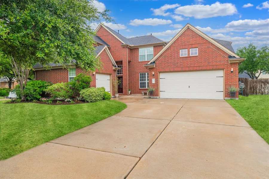 Stunning well-maintained 5-bed, 4-bath home w/3-car garage on a desirable corner cul-de-sac lot in the heart of Cinco Ranch! Welcoming 2-story entry leads to a private study w/French doors & elegant formal dining. Spacious family room features soaring ceilings, gaslog fireplace & a wall of windows overlooking the backyard. The open-concept kitchen offers an island w/wine rack, brkfst bar, stainless steel appliances, walk-in pantry & coffee bar. Guest suite located downstairs. Lovely primary suite w/spa-like ensuite bath w/double vanities, jetted tub & separate walk-in shower. Engineered hardwood flooring thru-out the 1st floor. Upstairs boasts 3 bedrooms, 2 full baths (incl. Jack & Jill), large game room & a bonus 12x11 storage room. Enjoy outdoor living with a covered patio, low-maintenance yard & sprinkler system. Safe bike path to Stanley Elem & close to pools, lakes, trails & parks. Zoned to top-rated Katy ISD schools! Recent interior paint, exterior fencing & sod done Spring???????????????????????????????? 2025.