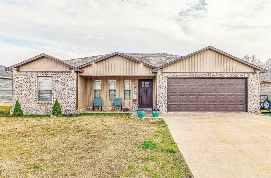 Beautiful 4-bedroom, 2-bath home featuring a desirable split floor plan and an open-concept living, kitchen, and dining area that keeps everyone connected while still allowing comfortable, defined spaces. The spacious primary suite offers a private retreat with an en-suite bath and walk-in closet. Fresh paint throughout enhances the bright, inviting interior, complemented by easy-maintenance acid-stained floors. The kitchen features a large island with breakfast bar, providing ample space for friends and family gatheringsperfect for the holiday season. Enjoy outdoor living in the privacy-fenced backyard with a covered patio, ideal for relaxing or entertaining. A covered front porch adds charm and curb appeal. Move-in ready and designed for comfort, functionality, and easy living.