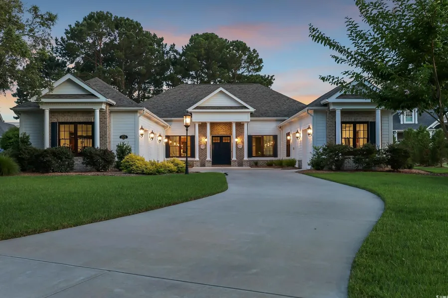 1575 Heritage Drive is a single-level custom home on the 5th fairway, just steps from the marina, built for living — not just looking. Mid-century modern influences show in its crisp lines, open flow, and understated style, making it timeless and easy to live in. Inside, 12-foot ceilings, wide-plank floors, and oversized Sierra Pacific windows fill the home with natural light and frame golf-course views. The kitchen, breakfast nook, and keeping room flow seamlessly — ideal for casual dining or relaxing by the modern fireplace. Thermador appliances, a leathered Caesarstone island, custom cabinetry, and a walk-in pantry keep everything organized. Some photos have been virtually staged. Dining and living rooms open from the entryway, creating an airy feel. The living room leads to the covered veranda, extending the home outdoors — perfect for evening cocktails, weekend grilling, or a post-workout cool-down. The primary suite offers golf-course views, a soaking tub, dual vanities, and a large tiled shower. Two additional bedrooms (one en suite) and a glass-doored office provide flexible space for work, guests, or hobbies. The garage is a true luxury toy box. Three-car plus golf-cart bay with epoxy floors, insulated doors, and jackshaft openers offers room for cars, bikes, boards, a home gym, or workshop — and can convert to conditioned living space if needed. Laundry is stylish and functional with Maytag appliances, utility sink, cabinetry, and a hand-laid tile backsplash. Low-maintenance landscaping, Rainbird irrigation, whole-house dehumidifier, generator, and CoreGuard Plus™ windows make upkeep effortless. Backed by a transferable 10-Year Quality Builders Warranty. Heritage Plantation delivers a gated, amenity-rich lifestyle — marina, pool, tennis, pickleball, clubhouse, and championship golf — just minutes from Pawleys Island beaches, dining, and boutiques. Perfect for buyers seeking a light-filled, mid-century inspired, easy-to-live-in home that works as hard as they do.