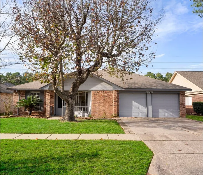 Charming One-Story Home in Bridgestone West! Ideally located in Spring with quick access to both I-45 and Grand Parkway 99, this inviting home offers great curb appeal, a welcoming front porch, and a two-car garage. Inside, you’ll find a light-filled, open family room and dining combination featuring vaulted ceilings, a corner wood-burning fireplace, and newly installed vinyl plank flooring—perfect for everyday living and entertaining. The kitchen is conveniently located off the entry and offers ample counter space and a pantry, providing a functional layout. The spacious primary suite features brand-new carpet, an ensuite bathroom with double sinks, and an oversized walk-in closet. A desirable split floor plan includes two secondary bedrooms, both with new carpet, and a full hall bath. Step outside to enjoy a large covered patio overlooking a generous green backyard. A storage shed is i...