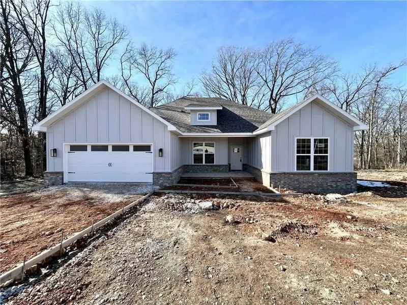 Stunning new construction home on a wooded lot with easy access to I-49! Perfectly situated just minutes from Lake Loch Lomond. Step inside to discover a beautifully designed interior with 3BD's + office, a split floor plan, & custom modern finishes throughout. Wood floors! The spacious living area showcases a beamed vaulted ceiling, creating an inviting atmosphere. The kitchen features sleek 3 cm quartz countertops, a gas range, custom cabinets, and stylish stainless-steel appliances. Retreat to the luxurious primary bath, which boasts a huge walk-in closet, a large custom walk-in tile shower, and a soaking tub. 2 covered patios. As an added bonus, receive $3,500 towards buyer's closing costs when working with the builder’s preferred local lender!