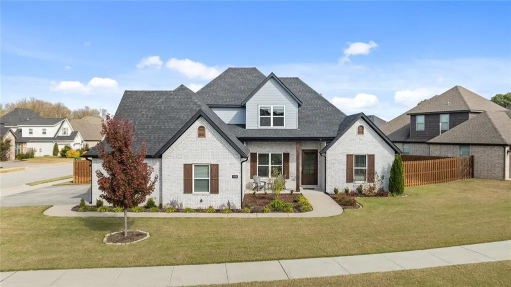 Meticulously maintained and move-in ready, this 4-bedroom, 2.5-bath home offers comfort, style, and convenience in Bentonville’s sought-after Creekside subdivision. Built in 2021 and perfectly positioned on a corner lot, this one-owner home looks barely lived in. Inside, the open floor plan is filled with natural light and features a cozy gas fireplace in the living room, a granite eat-in kitchen with pantry, and a formal dining room perfect for gatherings. The large bonus room adds flexibility for a home office, playroom, or media space. The split-bedroom layout provides a private primary suite with walk-in closet and spa-like bath, plus three additional bedrooms and a second full bath upstairs. Enjoy a covered patio, fenced backyard, and irrigation system for both front and back yards. The oversized 3-car garage with insulated doors offers extra storage. Located behind the community po...